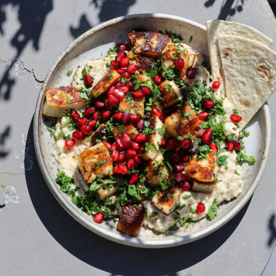 Knuspriger Halloumi, Zitrone, ein Klecks Baba Ganoush. Mehr passiert nicht, und genau das macht es so gut.