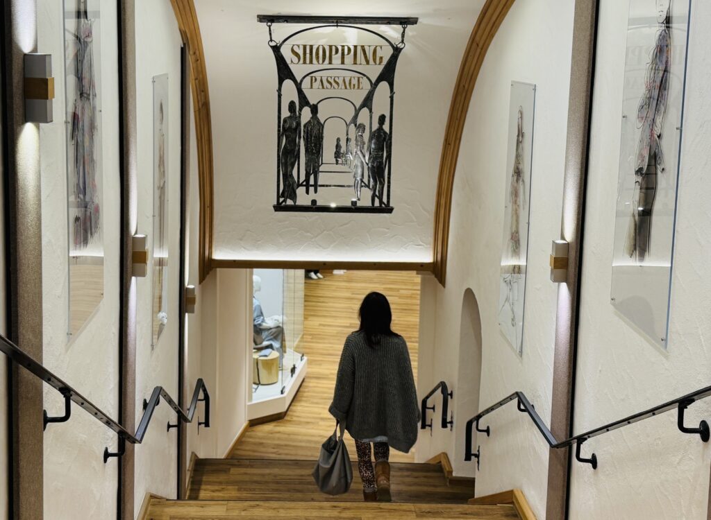 Das Sonnenalp Resort ist grosszügig angelegt, stark verwinkelt und wirkt fast wie ein kleines Dorf. Herzstück ist die weitläufige, zweistöckige Lobby mit viel Holz, warmen Stoffen, gemütliche Sesseln und einer Mischung aus alpiner Eleganz und Wohnzimmergefühl. Oben befindet sich eine Galerie mit Bibliotheksbereich, ein ruhiger Rückzugsort. Im Haus selbst gibt es eine Vielzahl an Boutiquen und Läden (rund 13), sowie einen Coiffeur, was den Resort-Charakter unterstreicht. Man könnte bleiben, flanieren, sich treiben lassen, ohne das Gelände verlassen zu müssen. Wenn das Wetter also mal schlecht ist: egal. Man kann gut einfach hier bleiben und sich einmümmeln.