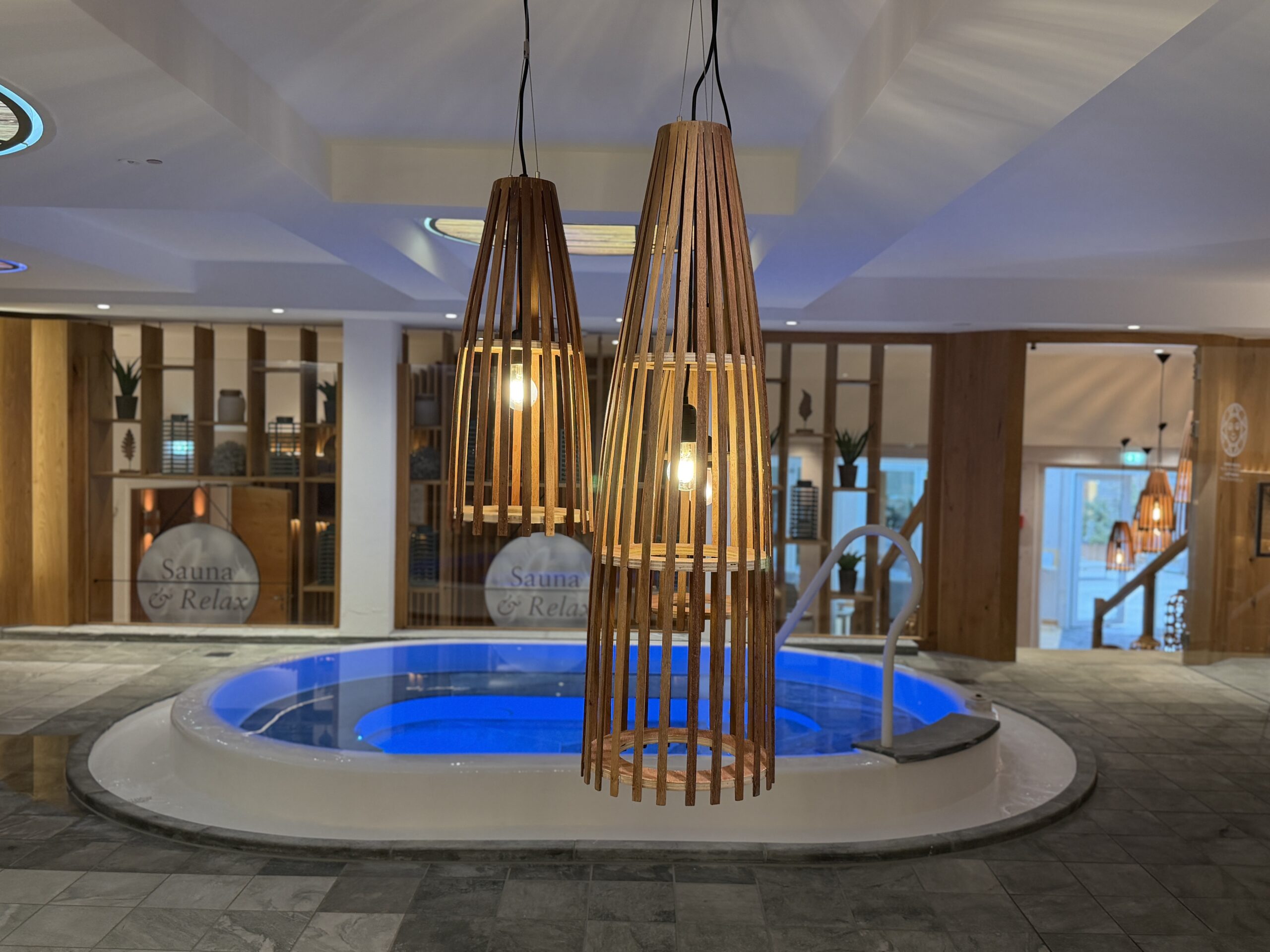 Auch da ist eine große Wellness- und Wasserwelt mit Innen- und Außenpools, Whirlpools und natürlichen Badebereichen inklusive eines eigenen Bergsees. Sowie auch eine Saunalandschaft (plus Blockhaus-, Bio-Panorama-, finnische Sauna), Dampfbad, Erlebnisduschen und Ruhezonen wo nur Erwachsene rein dürfen. Da gibts auch Snacks und Getränke.