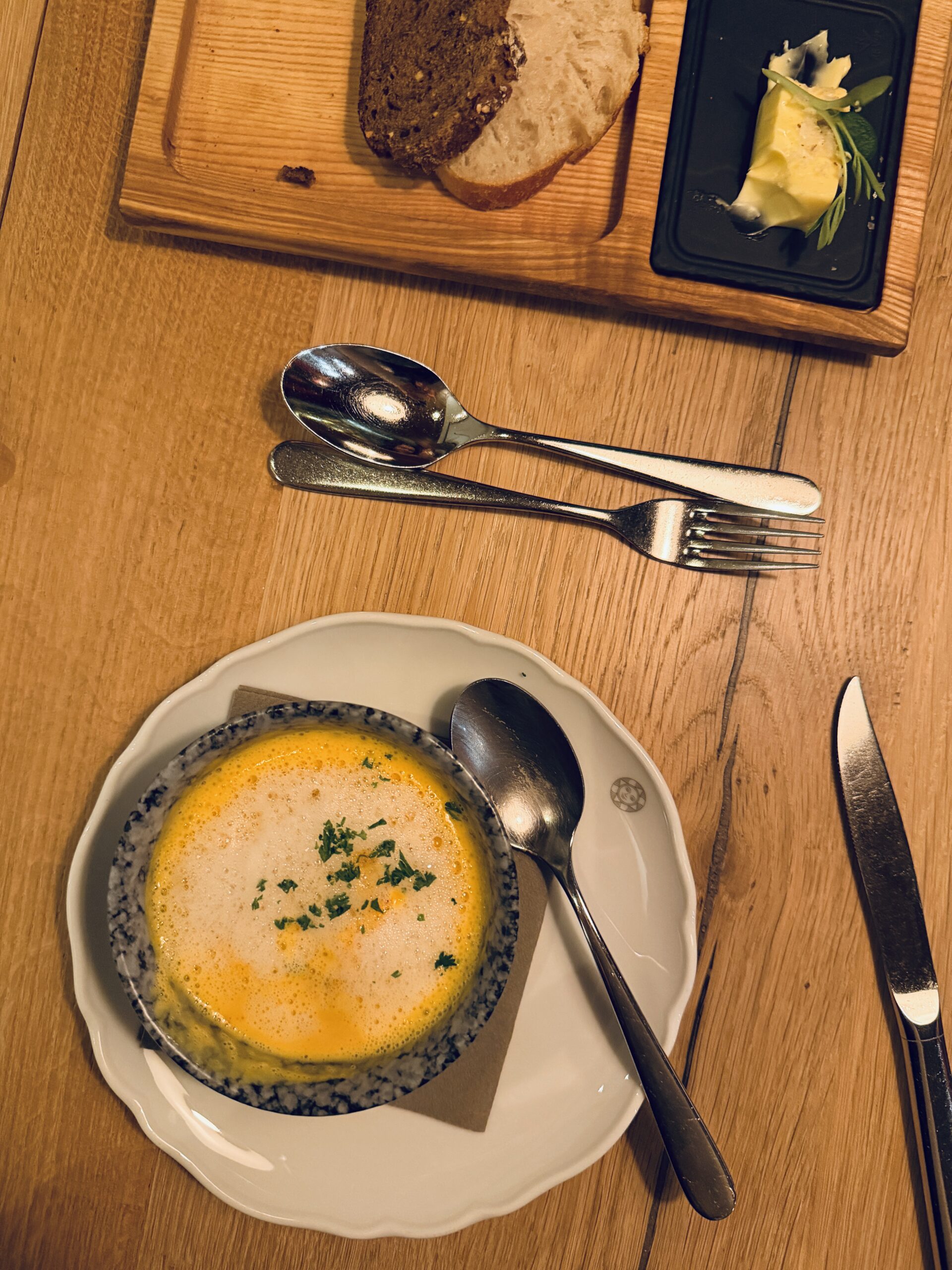 In den verschiedenen Stuben im Hotel selber, lässt es sich ebenso wunderbar speisen. A la carte oder am liebevoll und grosszügig arrangierten Buffet. Die Einrichtung ist gemütlich traditionell und warm. Der Wohlfühlpegel schlägt in alle Richtungen aus. Und das Frühstücksbuffet ist ein Träumchen. Alles was da sein muss ist da, plus Gemüseentsafter, Ingwershots, frischgepresster Orangensaft und die besten, frisch angebratenen Spiegeleier.