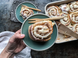 .. ah ja und dann kommt ja dann hier noch die Zucker-Zimt-Mischung drauf. Ein Grund mehr, warum ich im Teig drauf verzichtet habe :-).