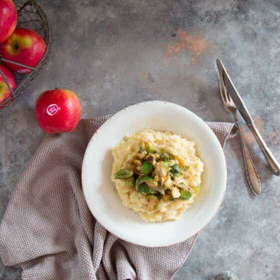 Früchte machen sich immer prima im Essen und geben dem ganzen Gericht einen spannenden, süss-frischen Twist. Dieser Apfel-Kartoffelstock mit dem gerösteten Rosenkohl schmeckt herrlich sweet n’salty.