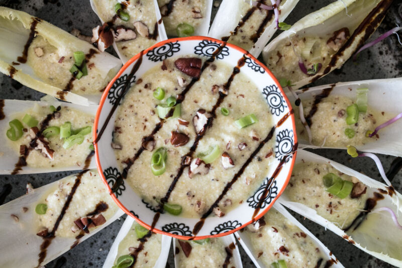 Halloumi Bites auf Baba Ganoush