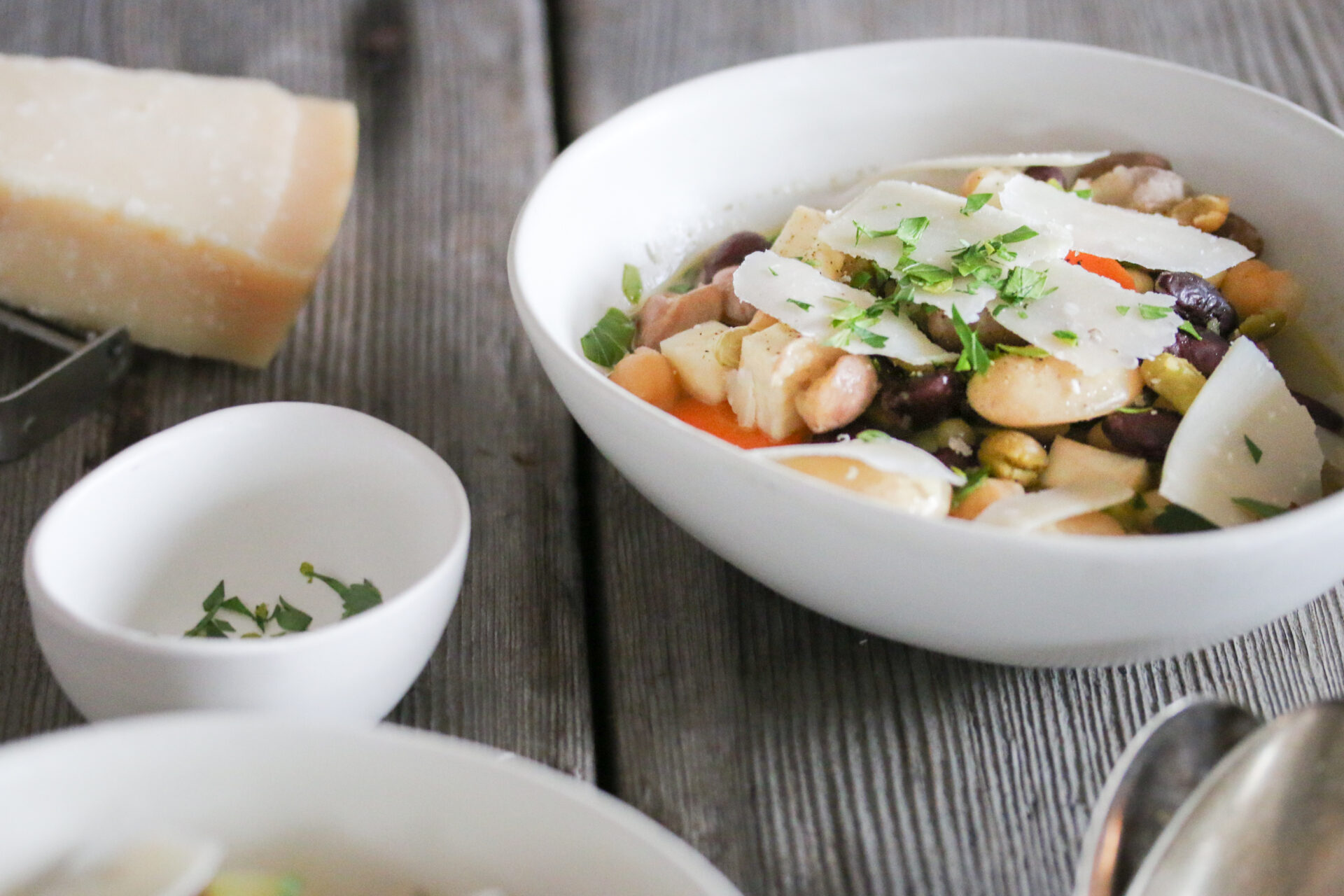In dieser Buuretopf-Mischung, die ich hier verwendet habe, stecken Borlottibohnen, weisse Bohnen, Kichererbsen, Soisson-, Rote- und Flageolets Bohnen, sowie Grünerbsen und Gelberbsen. Da kommt also einiges an Vitaminen und Nährstoffen zusammen. Unter anderem die Vitamine B, K und E, Beta Carotin, Folsäure, aber auch Eisen, Kalium, Kalzium, Magnesium, Phosphor und Mangan.