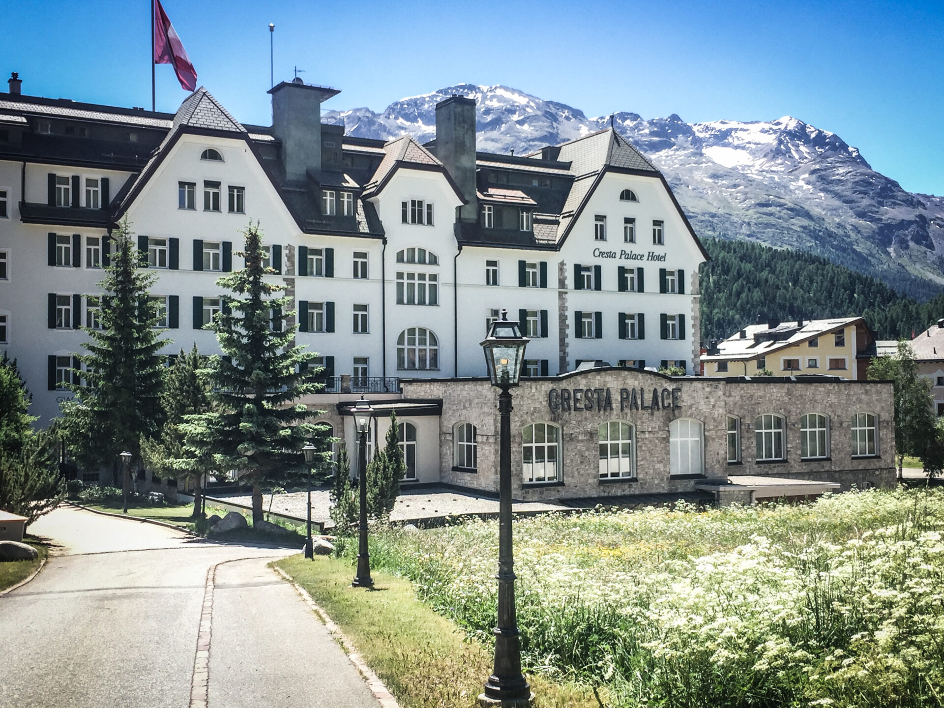 Das Hotel Cresta Palace befindet sich direkt rechts vom Bahnhof in Celerina. Super eigentlich. Ausser man läuft beim Bahnhof links weg, dann das Strässlein bei der Kirche runter und denkt sich fälschlicherweise intuitiv, dass man jetzt wohl nochmal links abbiegen müsste. Ja, dann ist es ein längerer Fussmarsch.