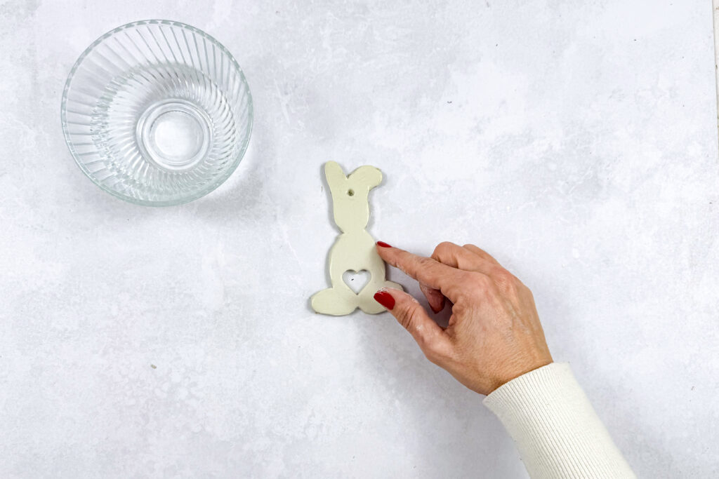 6. Alle Kanten und Übergänge mit leicht angefeuchteten Fingern glätten. Anschliessend die Anhänger flach liegend über Nacht vollständig trocknen lassen.