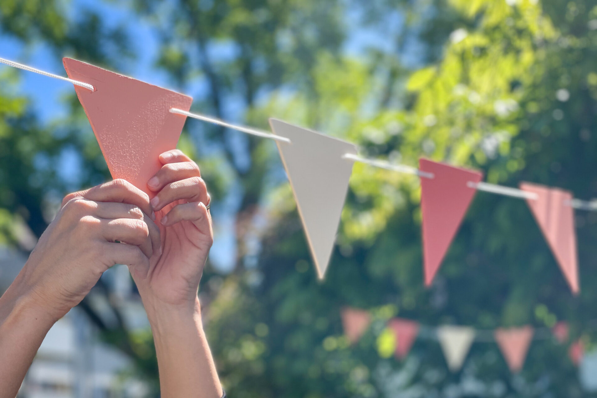 Durch die Imprägnierung der einzelnen Wimpel mit Klarlack ist die Holzgirlande damit besonders für den Outdoor-Bereich geeignet. Damit könnt ihr euren Balkon oder Garten besonders schön und sommerlich dekorieren.
