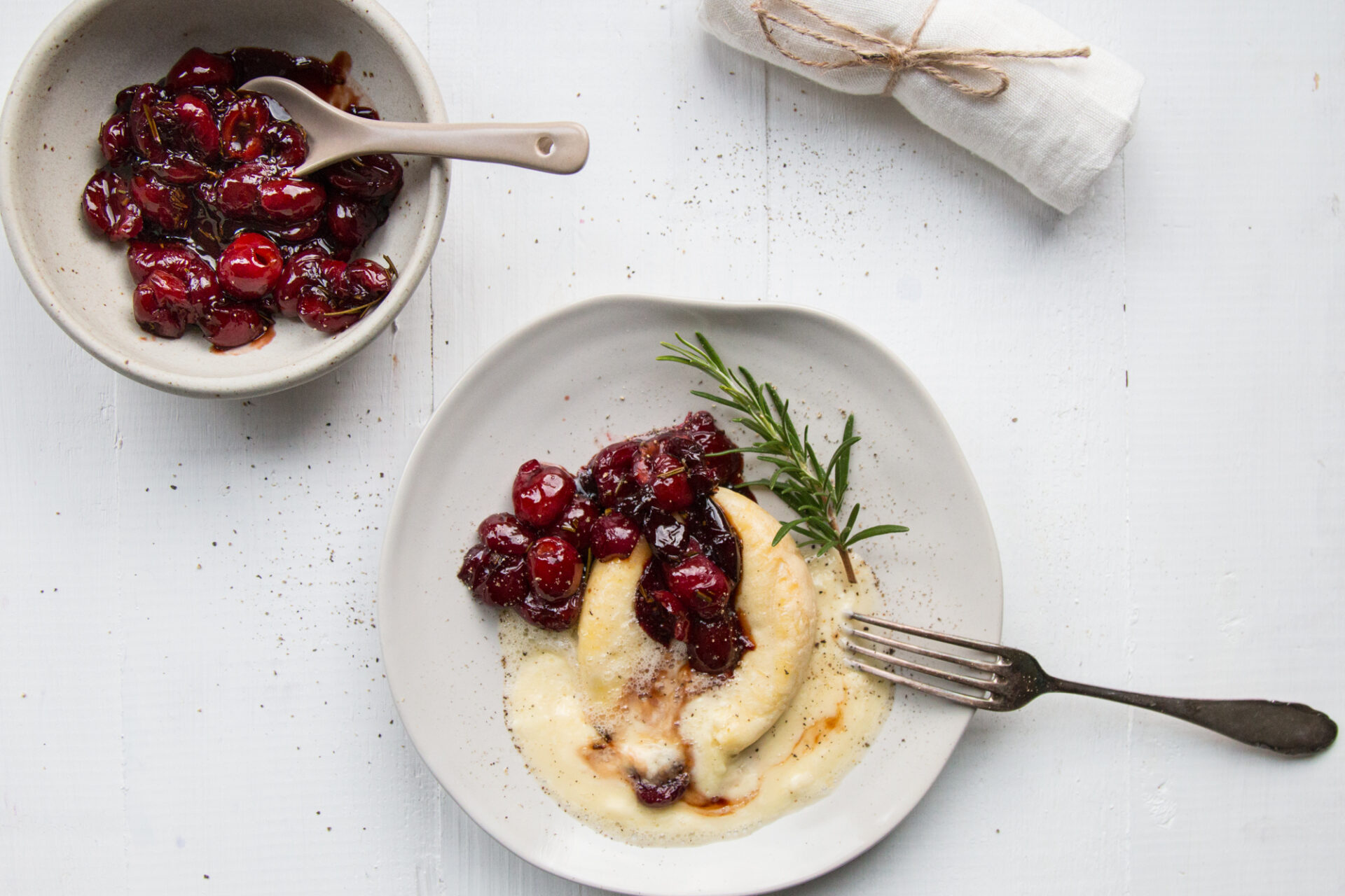 Gebackener Tomme mit Balsamico-Kirschen