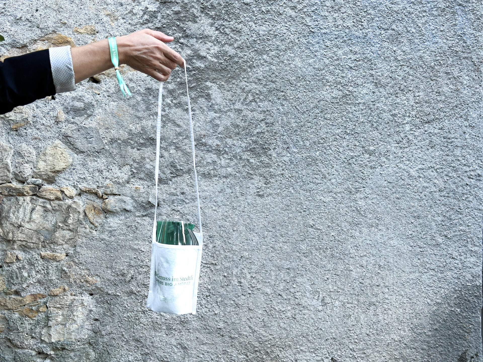 Für CHF 95.- pro Ticket kriegte man ein Täschchen (die Pochettes) mit Plan, einem Weinglas und Besteck und dann gings los. Auf einen Mehrgänger mit Weinbegleitung. Immer schön in Bewegung.