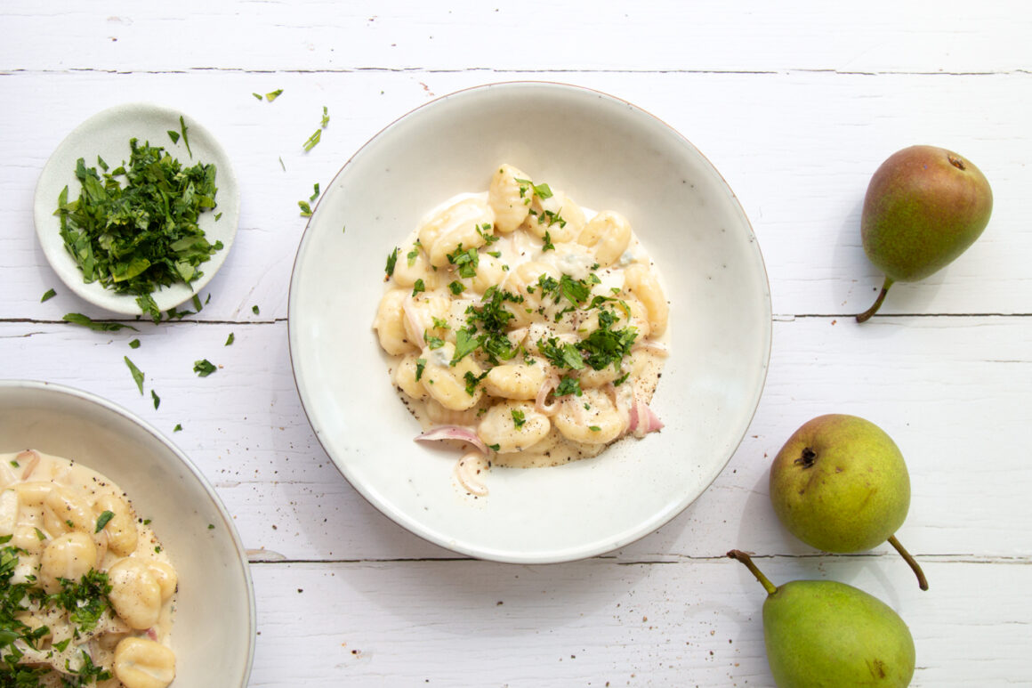 Für das schnelle Zmittag. Unaufgeregt, cremig und gut. Diese Gorgonzola Gnocchi mit Birnen machen Freude und sparen Zeit.