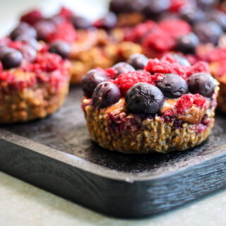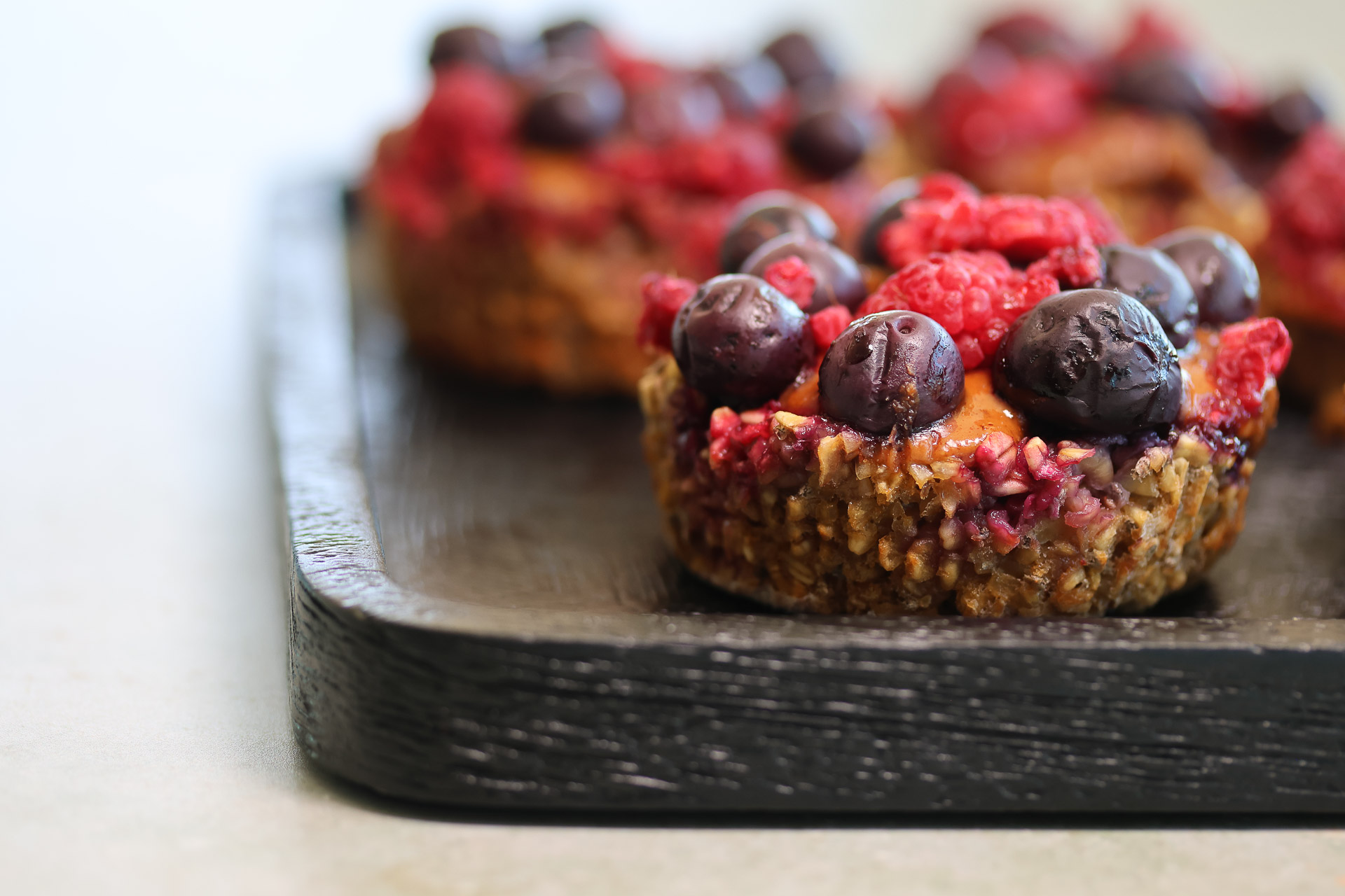 Die Basis ist schlicht, fast unspektakulär. Haferflocken, ein bisschen Süsse, etwas, das zusammenhält. Dann kommt das Mandelmus, weich und ruhig, und die Beeren, die im Ofen leicht aufplatzen und alles ein bisschen saftiger machen. Das klappt gut mit Tiefkühlbeeren, so könnt ihr dieses Pocket Porridge locker das ganze Jahr machen.